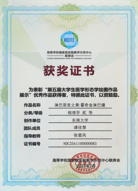 潘佳慧同学的作品 《淋巴恶变之果:霍奇金淋巴瘤》获二等奖