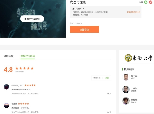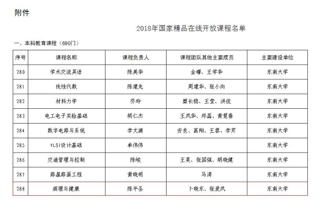 Recently, the Ministry of Education issued theNotice on the results of the 2018 National Excellent Online Open Courses. The Pathology and Health course from the Department of Pathology and Pathophysiology of our school was awarded the  National Exquisite Online open Course. This is the first time that our school have won this accreditation and the first online course in Jiangsu Province that has been recognized by the Ministry of Education. Since the recognition of the “Pathology” course of our school as one of the first national online education exquisite resource sharing courses in 2016, our curriculum development has reached a new hight.