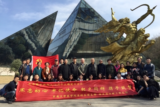 On the morning of March 15, 2019 Southeast University School of medicine party branch of the retired clinician and The party branch of junior undergraduate student collaborated and successfully organized a conference at the conference hall of the 1st floor, Basic Building Dingjiaqiao Campus. At the same time, in order to commemorate the 70th anniversary of the founding of the People's Republic of China, the two party branches jointly launched a discussion theme entitled “Remain true to our original aspiration and keep our mission firmly in mind to build a dream together”. After the discussion, they went to the Nanjing Anti-Japanese Aviation Martyrs Memorial Hall to carry out the theme educational activity.